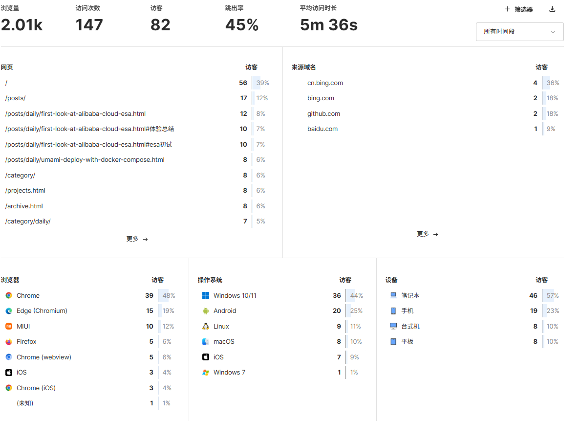 博主有两三个长期使用的自建站点,近日想加一个流量统计脚本,体验了几个云厂商的都不甚满意,偶然发现了Umami。